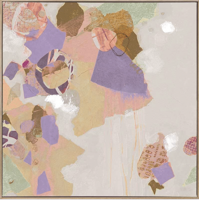 After the Rain Canvas Art Print – Looking at the positive side of life with this gorgeous collage abstract piece, featuring sporadic shapes and patterns, merging together in unity. Contrasting colours of lilac purple, soft yellow, golden brown, green, and pink give this piece a textural feel, with a light beige-grey background to match neutral tones within your space.