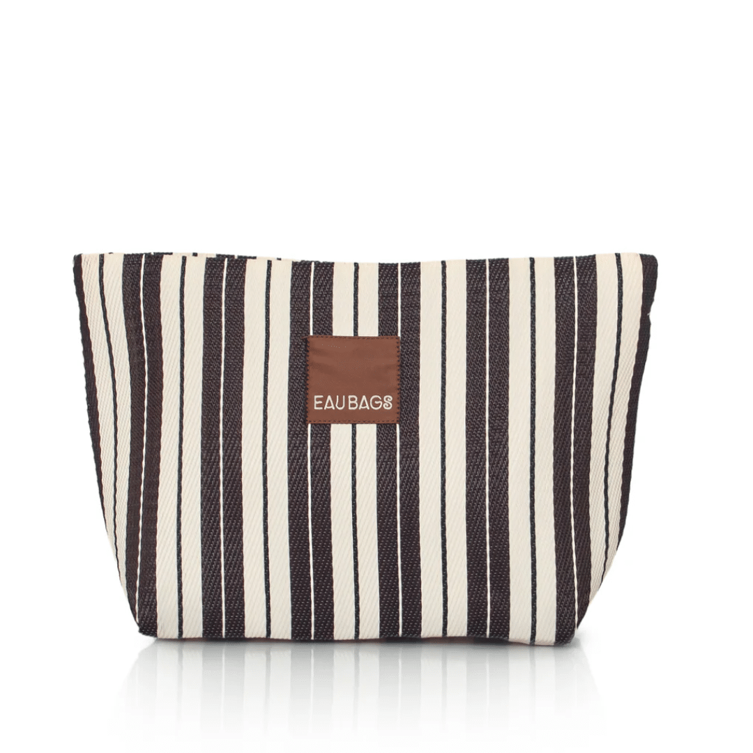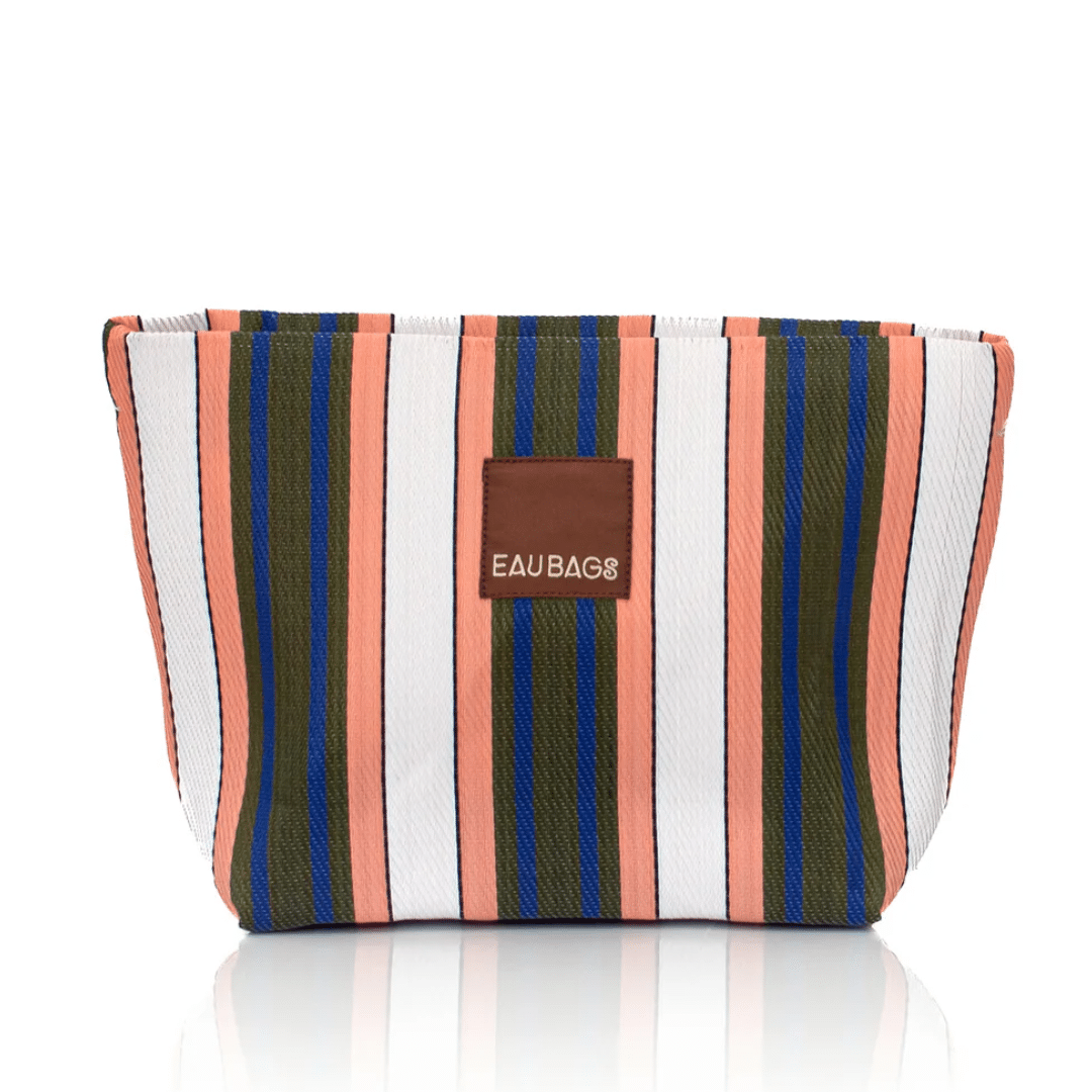 Each EAU BAG is handcrafted by skilled artisans in our dedicated studio in India. Olivia and Claudine visit their studio regularly to spend time with the team and oversee the making of each collection. Our signature stripes are made from 100% recycled nylon – an upcycled material created from waste like discarded fishing nets, old carpets and factory off-cuts. These materials are collected, cleaned and melted down before being spun and hand-dyed into new nylon yarn. The yarn is then woven into our durable striped fabric before being cut, stitched and assembled by hand into your most used bag. Because these materials have lived a life before becoming an EAU BAG, you may notice subtle variations in colour, texture or stitching. These are not defects, but part of the bag’s story – proof it was made by real hands, from materials that once existed elsewhere.