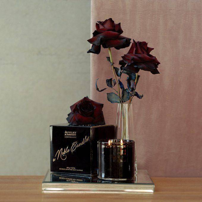 Revel in top notes of sumptuous black rose, laced with violet and grounded in musk with this ode to Turkey's ancient town of Halfeti. Encased in an artisan, mouth blown glass vessel, this evocative soy candle flaunts a truly luxurious and romantic black wax. Expect captivating aromas that boasts up to 60 hours burn time.