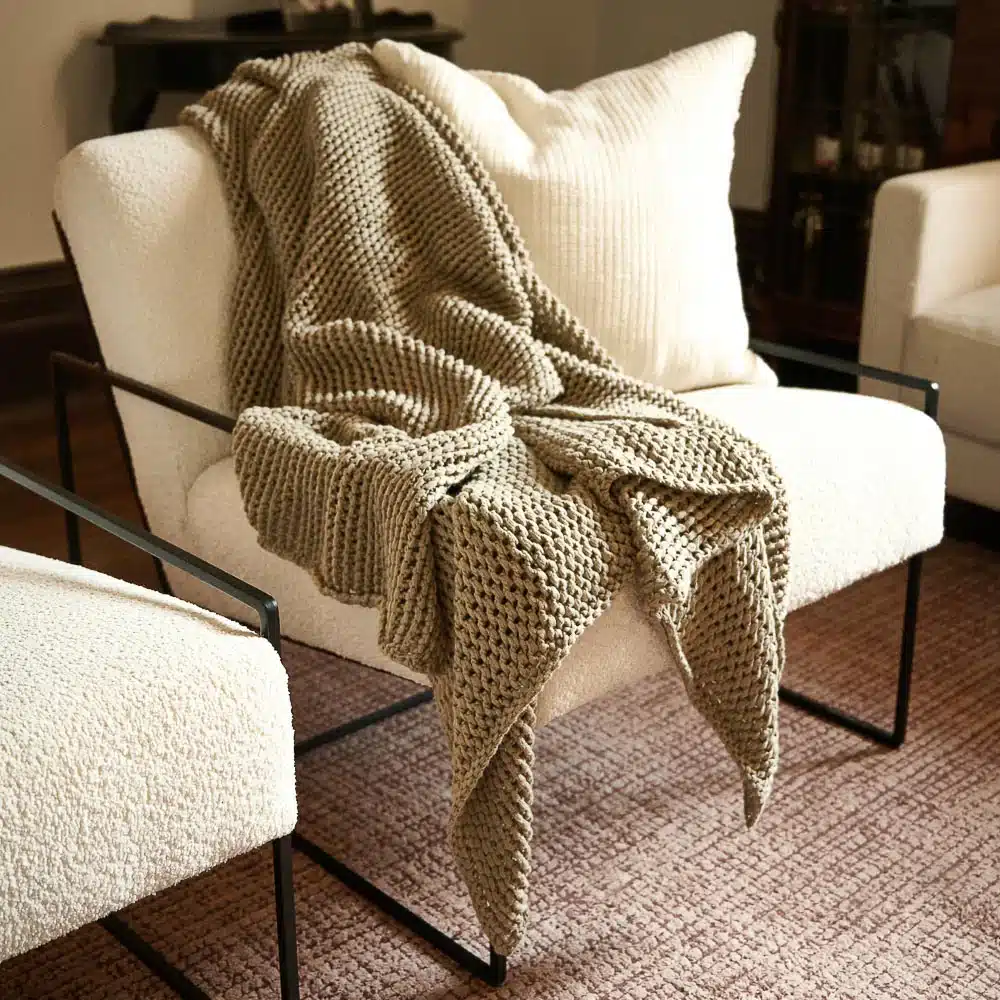 Our beautiful chunky 100% cotton heavy knit Abrazo Throw now comes in natural. It feels like home and looks amazing.