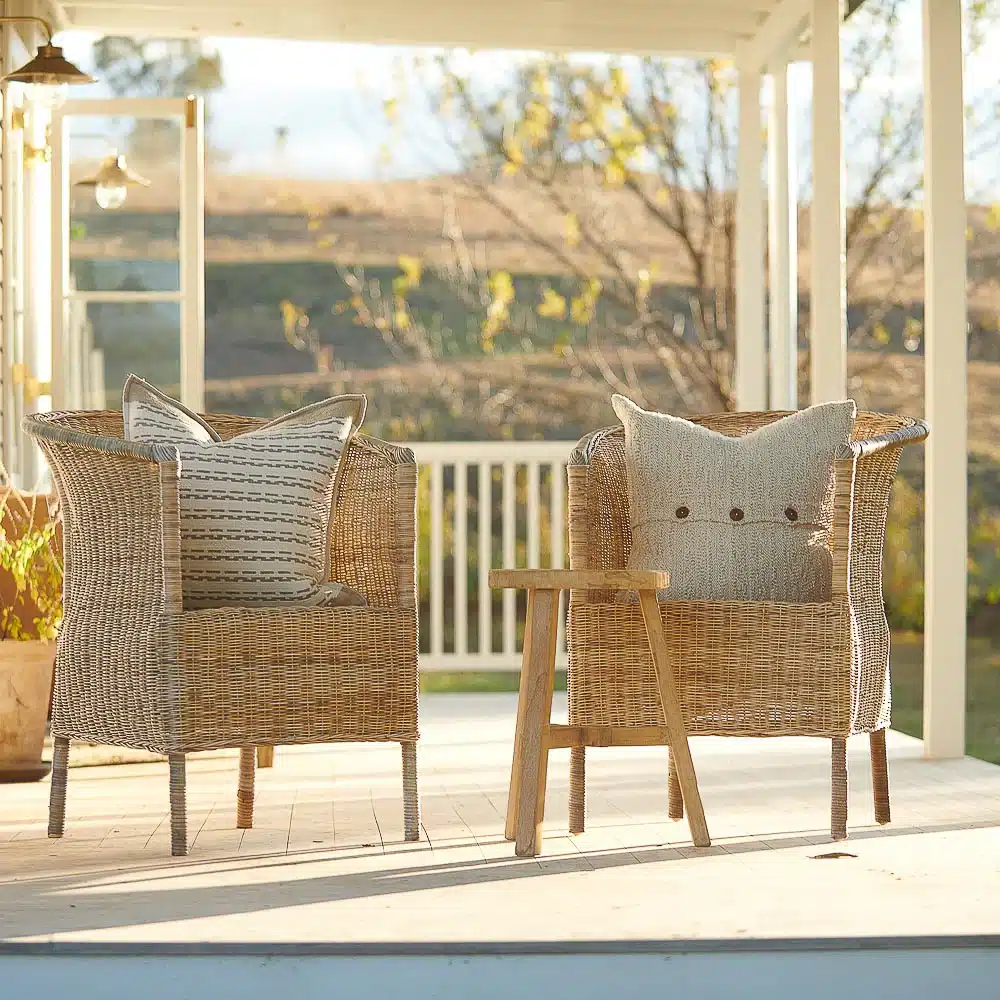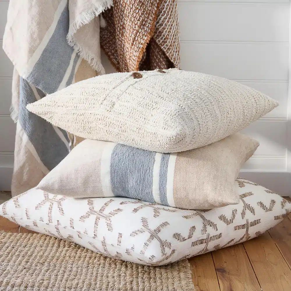 The new Afero cushion oozes comfort and warmth. Crafted from a cotton/linen blend, finished with timber button closures. Afero is a yarn dyed fabric, woven with a mix of natural and ivory feather yarn, creating an organic boucle effect. An exciting new finish that has been utilised across the Freya collection.