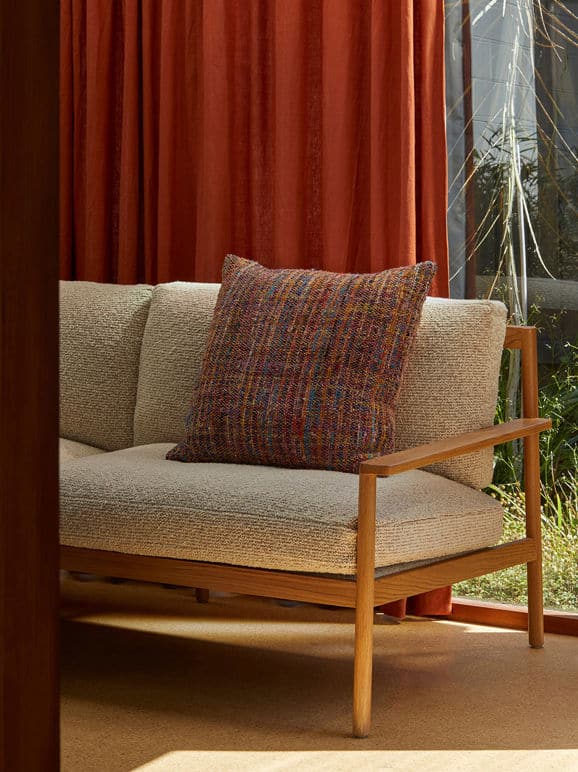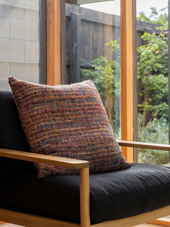 The Colette Cushion Cover celebrates reclaimed materials with a blend of recycled viscose and cotton. Utilising yarn off cuts from the garment trade in India, otherwise destined for landfill and reimagined into beautiful fabric.