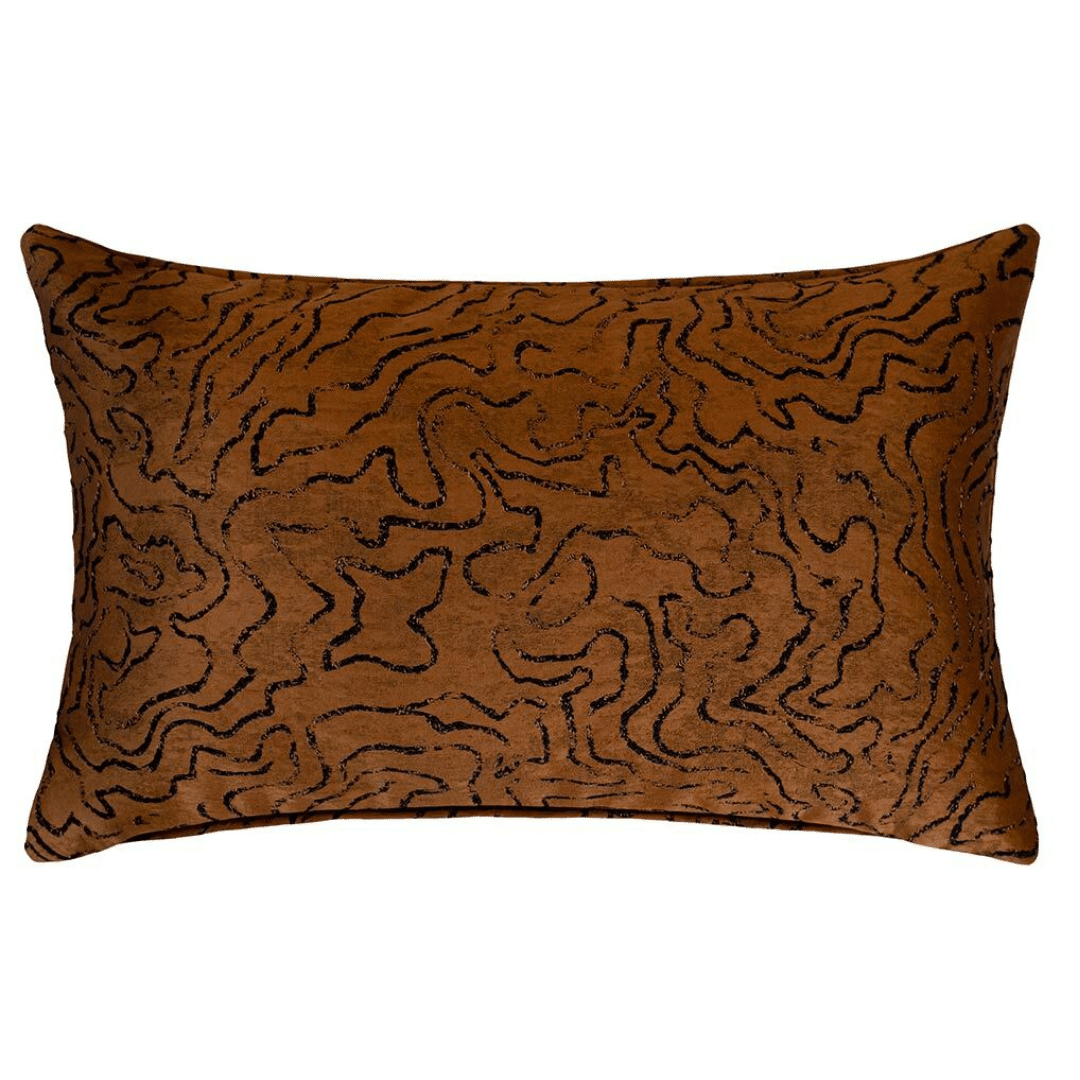 Emberlane Lumbar Cushion 50X30cm – Elevate any space with this luxury textured cushion by Darren Palmer, crafted with high-quality materials. Perfect as a bedroom cushion or living room cushion, the orange undertones with black, curved lines bring a warm, eclectic feel. An ideal, quality cushion for any interior design style, this piece is designed for lasting comfort.