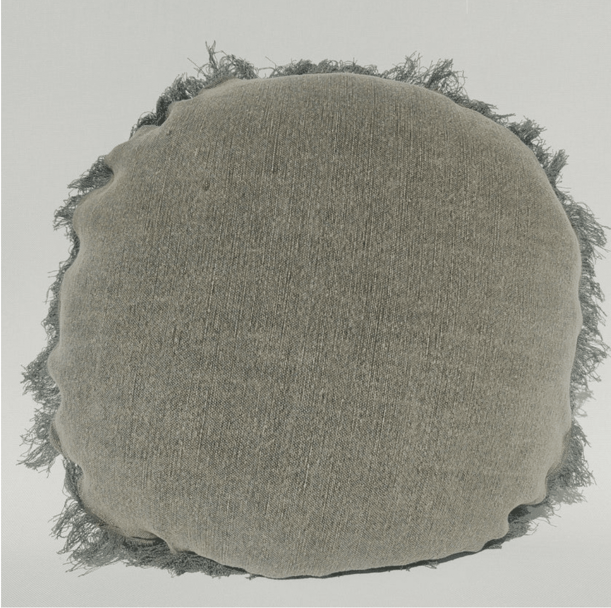 Cultiver Yarn Dyed Heavy Weght Pure French Linen Cushion 50cm Round Plush Feather Filled – Vouge Green