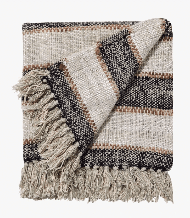 Woven from super soft pure cotton, the Eva range features a two-tone black and natural stripe with tan accents for a touch of warmth. Ideal for adding to your bed or sofa, style the Eva cushion and throw together, or as individual statement pieces.