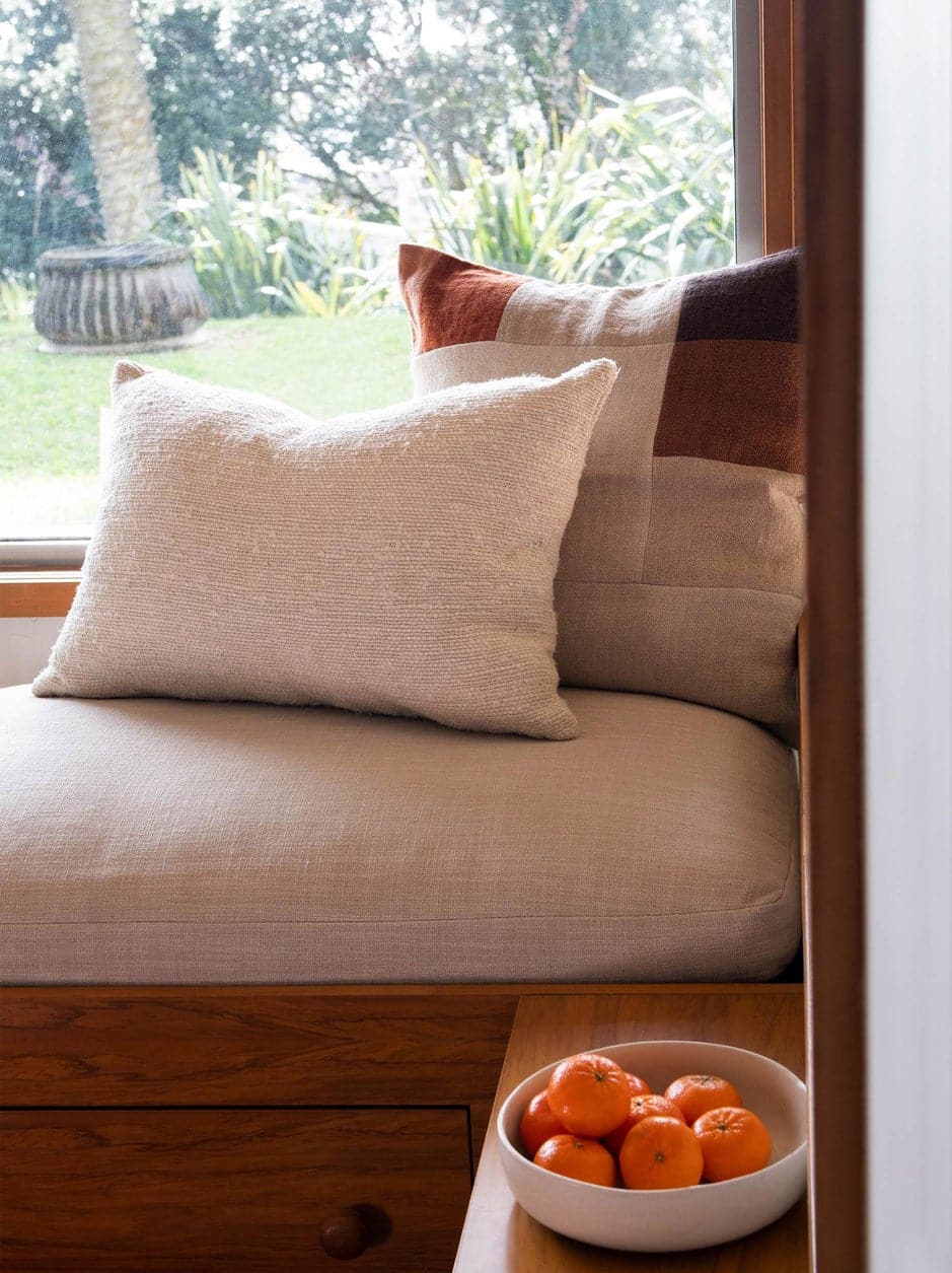 The Freida Cushion adds tactile texture to your home. The composition is a beautiful blend of raw silk and cotton to create an organic finish. The fibres are intricately woven in timeless black and natural.