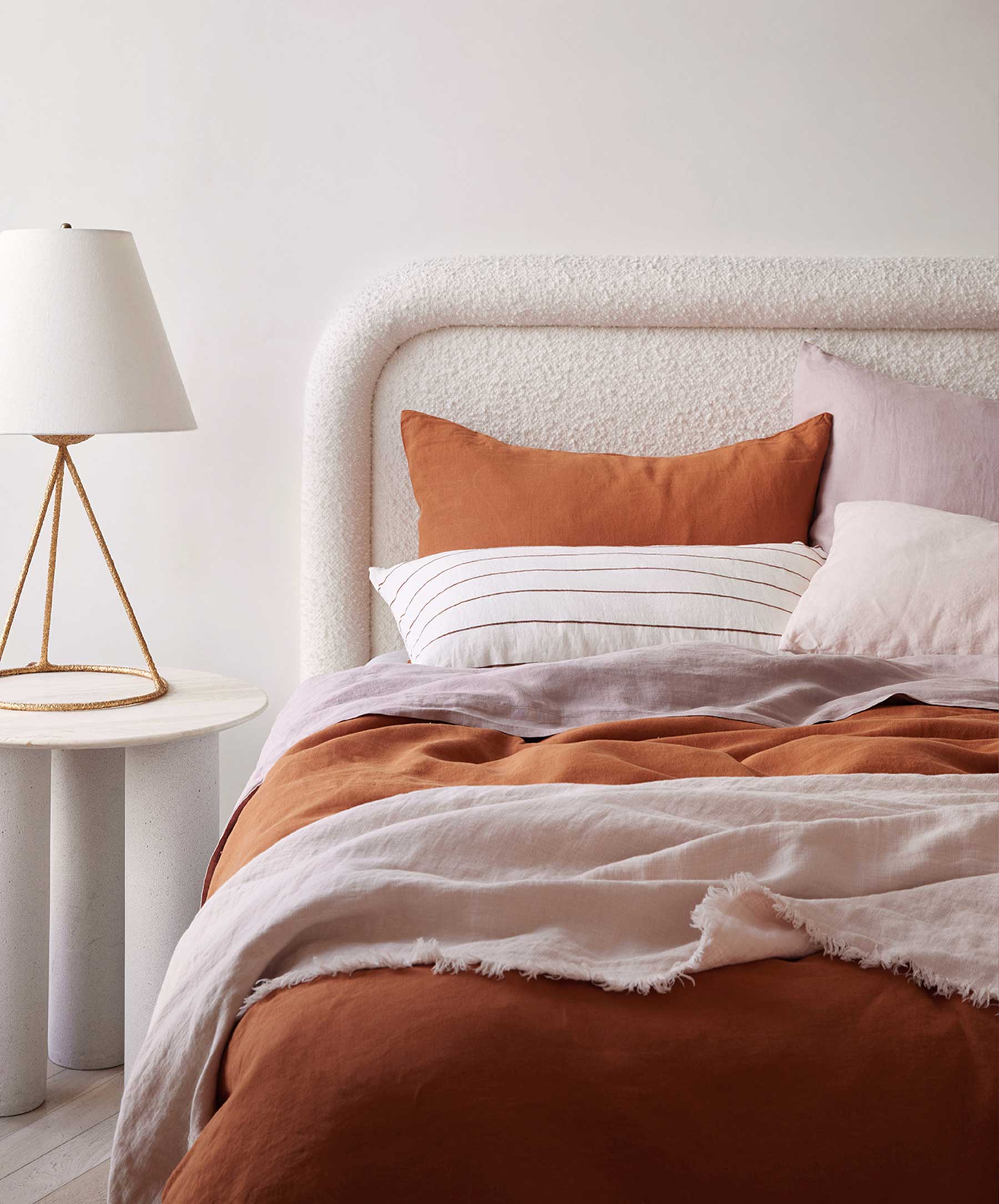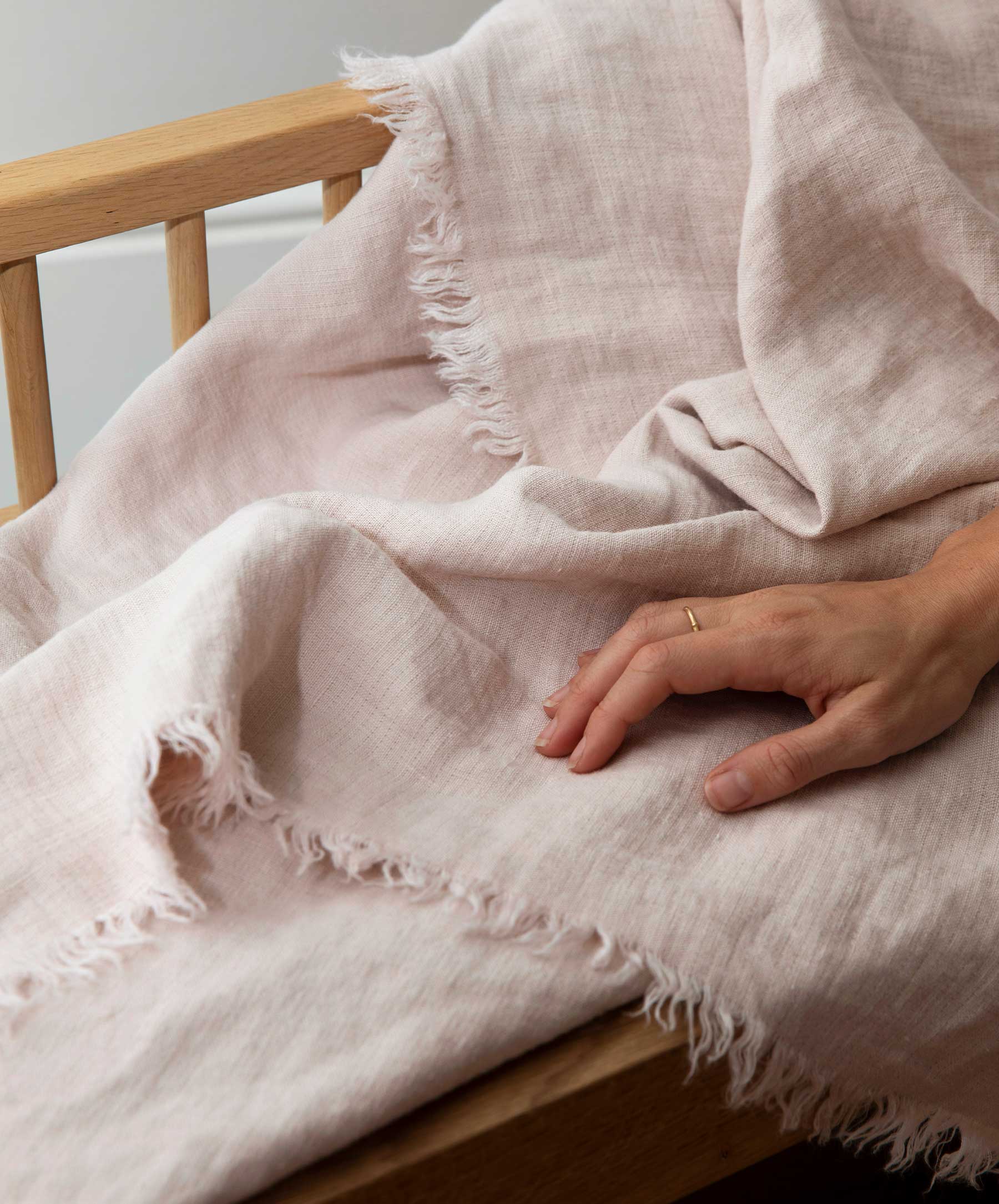 Crafted from a heavyweight pure linen, and finished with a delicate eyelash fringe and double stitch detail.