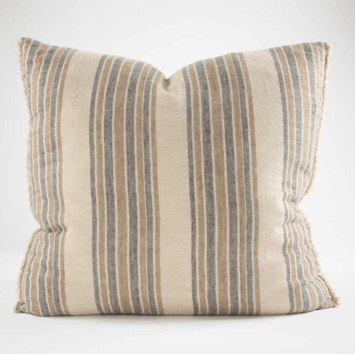 Our new Jeo linen cushion showcases rust and natural tones to give an earthy mood to this versatile cushion. The ink stripe lends itself to a slate or blue colour palette and the double layer of exquisite linen adds textural appeal. Pair with the matching Jeo linen throw with tan leather tassel detail.