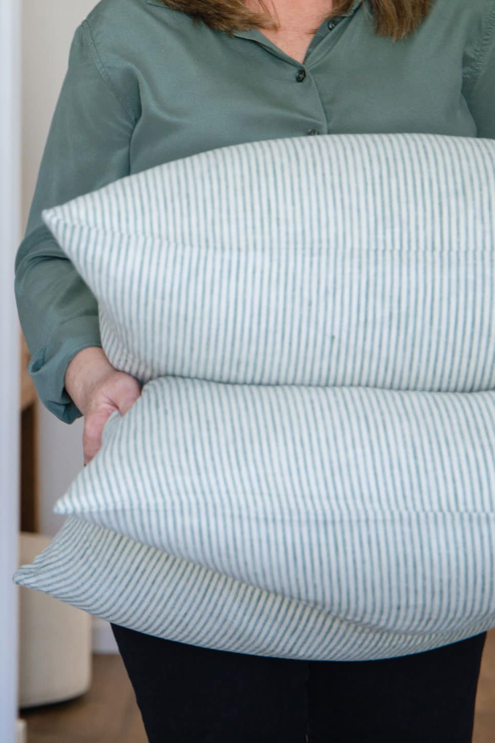 Marseille Yarn Dyed Pure French Linen Pinstriped Cushion 55cm Square or 40x60cm Lumbar Plush Feather Filled – Ginger & White Striped