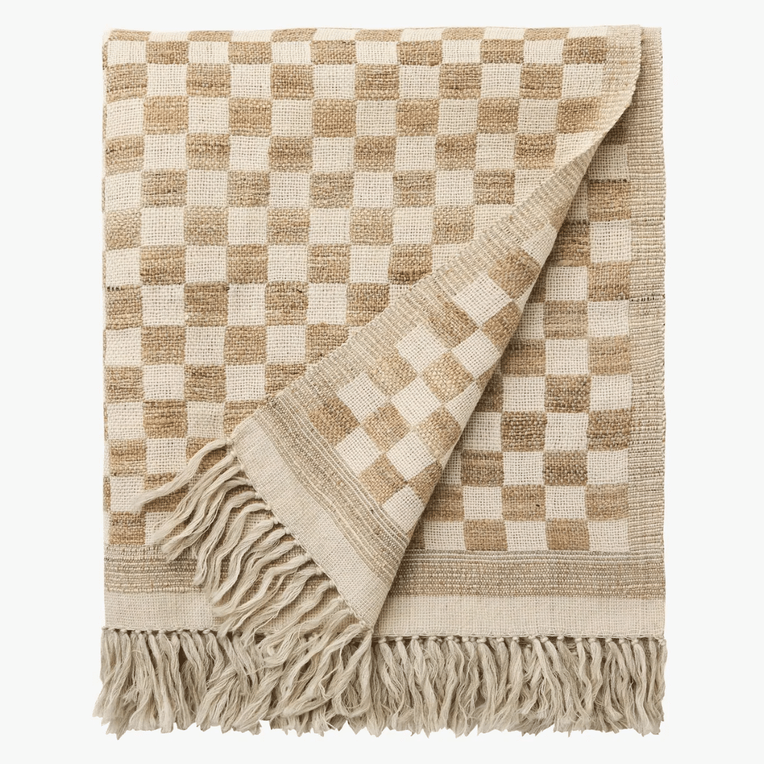 The statement, hand-loomed Matteo Throw adds style to any space with its warm, neutral tones and gentle Natural and Chalk chequered print. A testament to craftsmanship and design, each individual item is hand woven by artisans in India using ancient techniques.