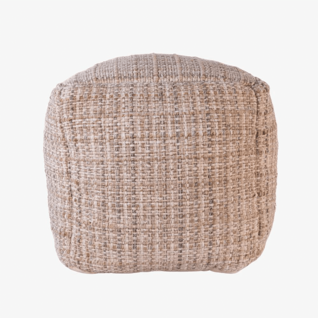 Chic wool-rich ottoman with boutique weave. Compact 45 × 45 × 45cm silhouette. Easy to move yet reassuringly sturdy. Style as side table or extra seat. Made for rooms that feel lived in.