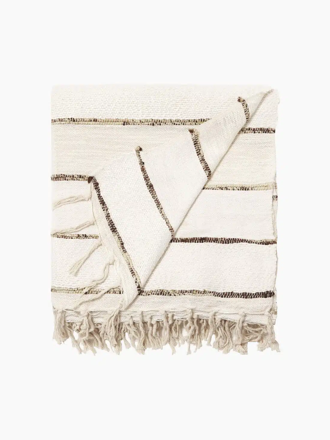 The Montana throw is a beautiful addition to any home, handloomed from super-soft pure cotton. This luxurious throw features an elegant stripe design that effortlessly enhances the aesthetic of your living space. Perfect for adding a touch of comfort and style to your bed or sofa, the Montana throw embodies the essence of effortless coastal living.Â