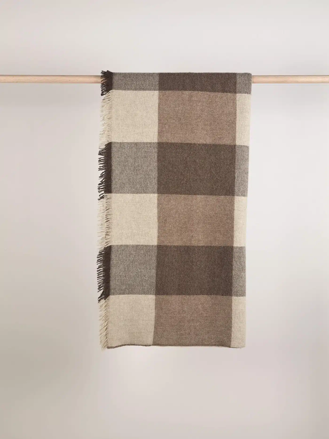 Crafted from premium undyed Australian wool, our luxurious Odin range highlights the natural tones of this precious fibre, redefining luxury. Designed exclusively in-house, the classic checked pattern is complemented by its subtle herringbone detail and each blanket is finished with a brushed fringe.