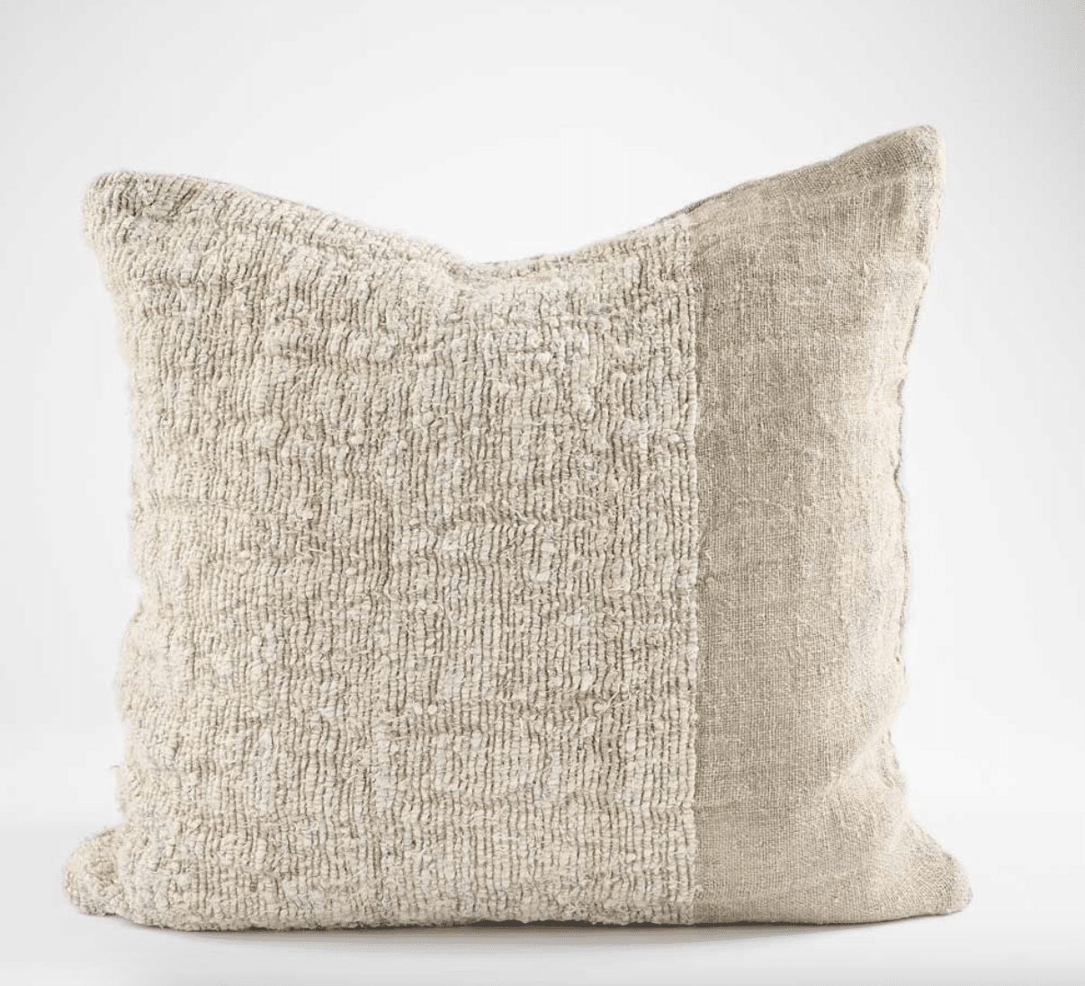 The Raffine cushion is an innovative design showcasing panels of recycled hand woven linen and cotton. Raffine is the start of many recycled designs to come. To pay homage to our amazing planet, we will be using this recycled fabric more and more to lessen our carbon footprint. Also available in a divine throw with knotted fringes.