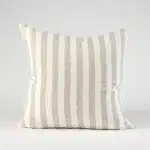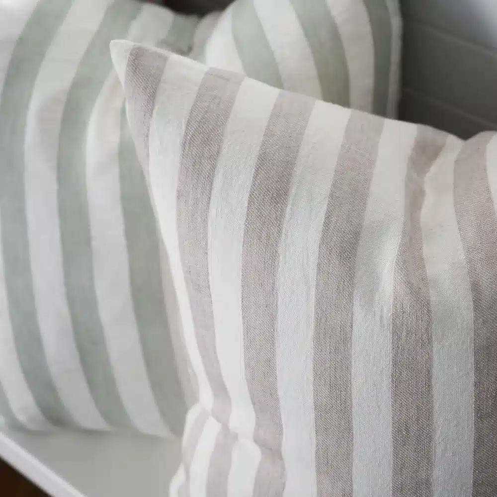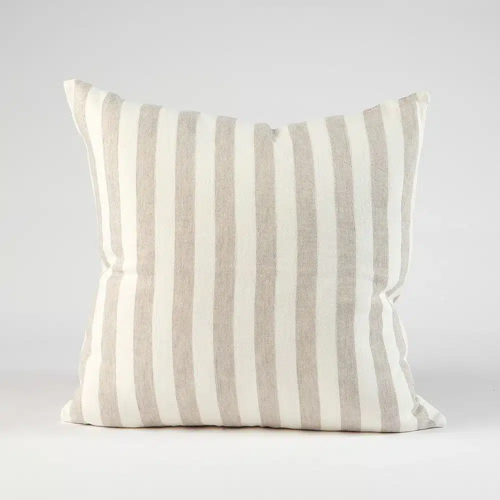 Our newest signature style, the Santi linen cushion, celebrates clean lines and statement appeal. We have reimagined the classic wide stripe tailoring it to the unique aesthetic of Eadie. Whilst the Santi stripe is bold, the yarn dyed fabric softens the stripe to create the ideal hue.