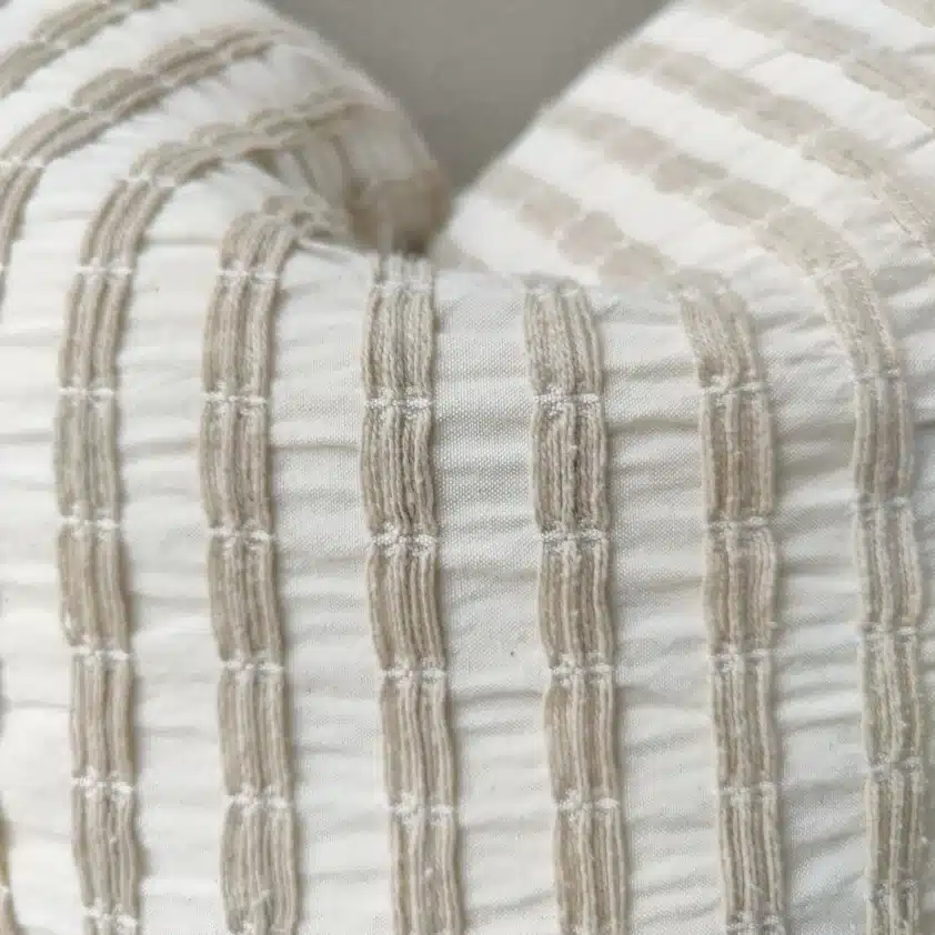 Enhance the sophistication of your home decor with the timeless elegance of the Troyes Linen Cotton Cushion. Crafted to perfection, this exquisite cushion boasts a classic striped jacquard design that effortlessly elevates any space with its refined aesthetic. Whether placed in your living room or bedroom, it serves as a stylish accent piece, adding a touch of understated luxury to your surroundings.Â