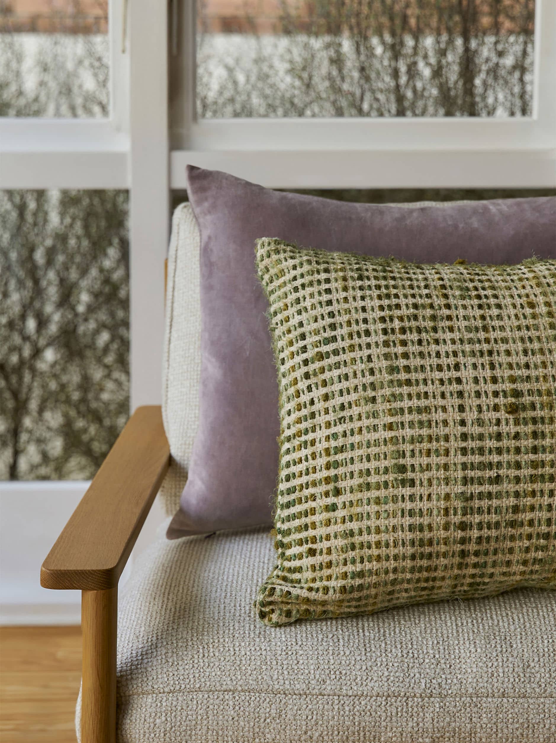 The Valerie Cushion celebrates the use of reclaimed materials, blending recycled viscose and cotton. The design utilises yarn off-cuts from India’s garment trade and reimagines them as a beautiful, textured fabric.