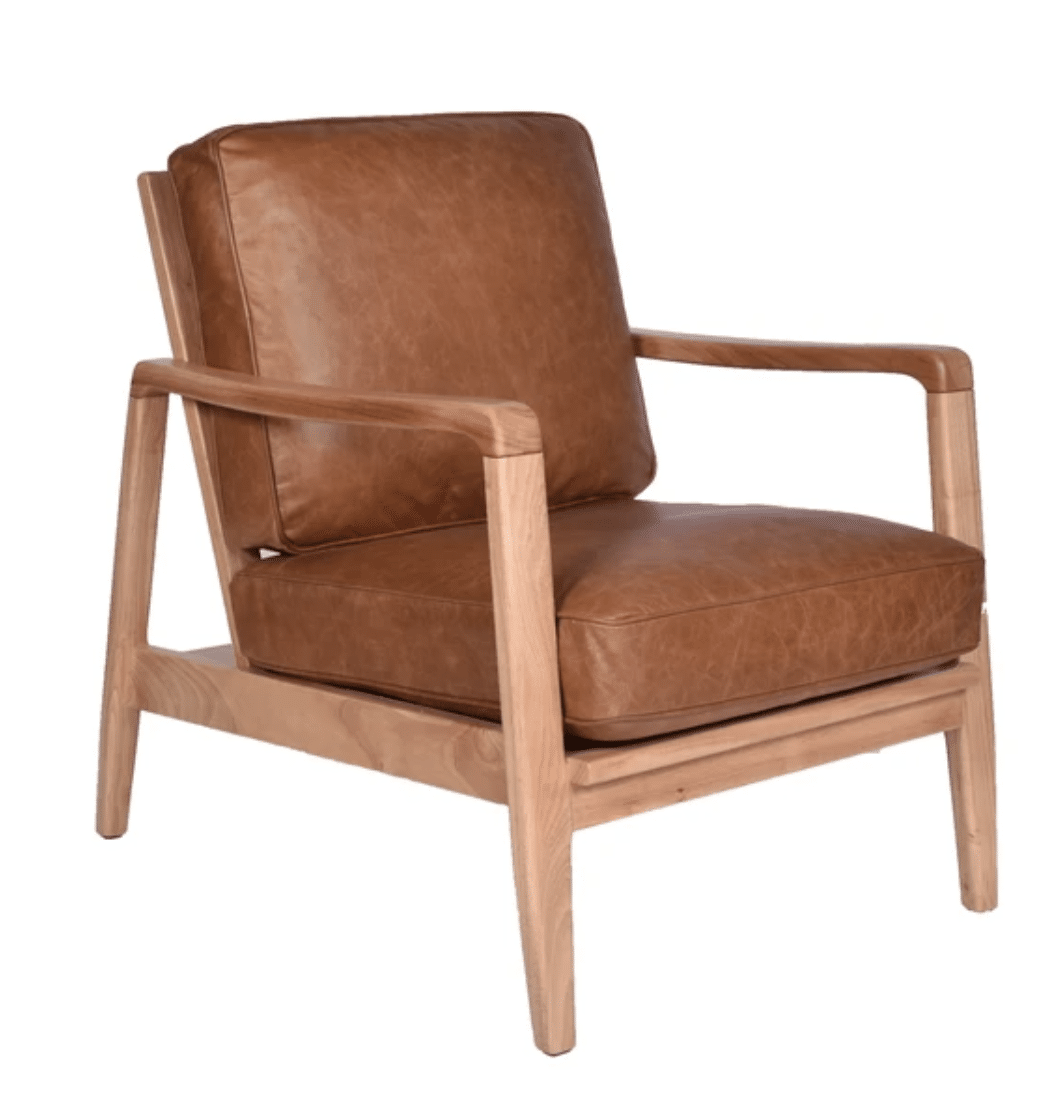 This statement armchair dual foam & feather stuffed cushions upholstered in soft, aged Colombian-brown leather. With an elegant timber frame and buckled strap details on the rear of the chair, this is one piece not to be stuck in the corner.