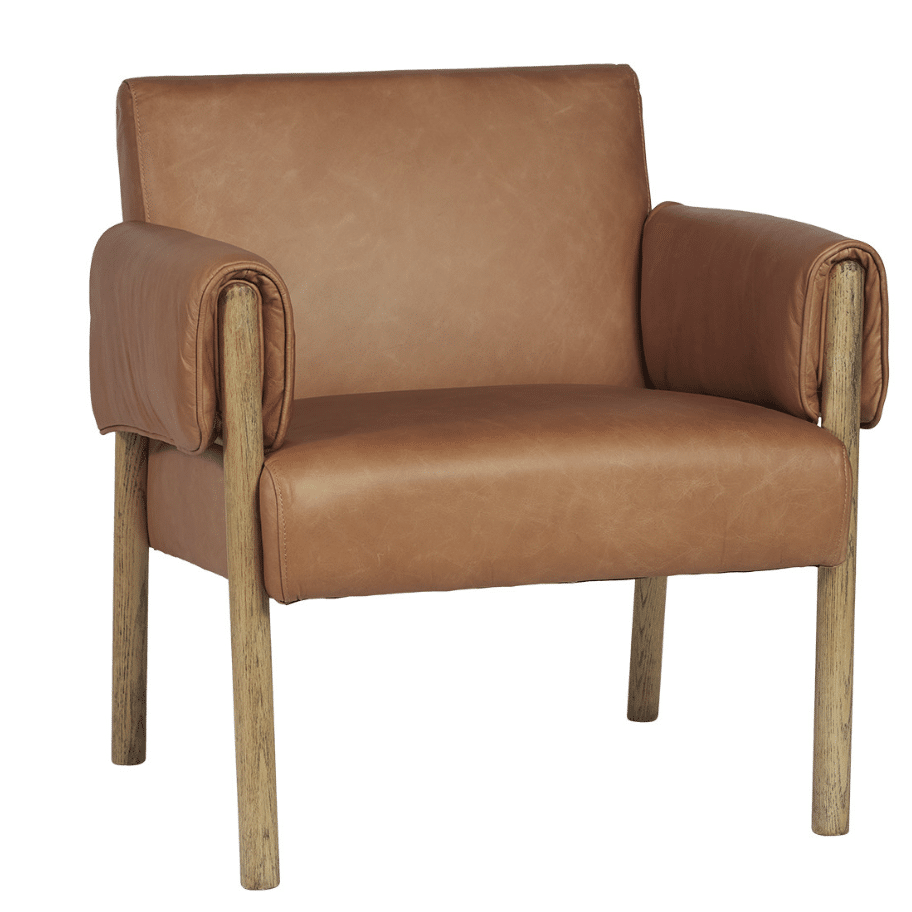 Our Grayson Armchairs have a distinctive presence with their saddle arm detail and simple timber frame. Available in a stunning amber leather or moss boucle fabric it will be a standout in any setting.