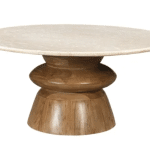 Compact yet impactful, the round shape encourages easy flow within your space, ideal for both modern and classic interiors. Whether styled with decorative accents or left minimal to showcase its natural beauty, this marble and wood coffee table effortlessly elevates your home décor.