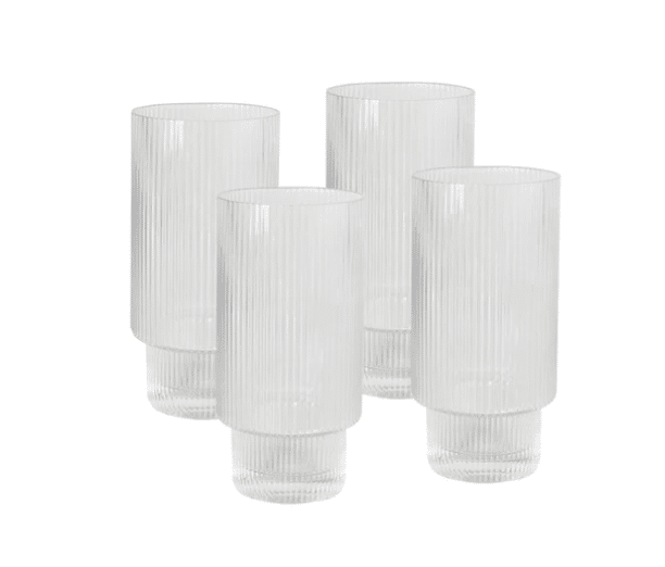 Lend an air of vintage sophistication to your next dinner party with the Oscar Ribbed Highball Glasses. Made from fluted glass these highball glasses, are sure to elevate your table and be the envy of all your dinner guests. As these glasses are hand blown, please allow for minor imperfections and differences between glasses.