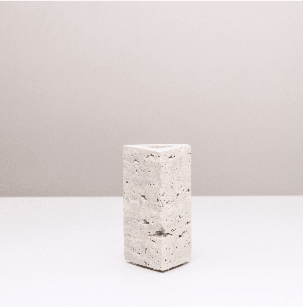 Crafted from solid travertine, our Deity Candlestand celebrates chic and minimal style. This beautiful, triangular candlestand exists like a sculpture and will add a touch of the artistic to your space. For a fresh and playful aesthetic, try pairing two or more Deity candlestands of different heights together and complete the look with contrasting coloured taper candles.
