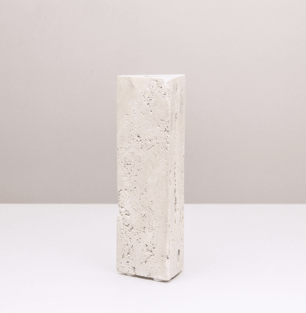 Crafted from solid travertine, our Deity Candlestand celebrates chic and minimal style. This beautiful, triangular candlestand exists like a sculpture and will add a touch of the artistic to your space. For a fresh and playful aesthetic, try pairing two or more Deity candlestands of different heights together and complete the look with contrasting coloured taper candles.