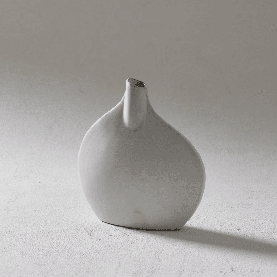 Fusing earthy finishes with playful design, our Edith vases have been handmade from the highest quality earthenware in a stunning, off-white hue. With a striking sculpture-like form, these vases have been finished in a beautiful reactive glaze meaning no two are exactly alike. We like to style our Edith vases with a simple, single stem or a small plume of dried billy buttons to contrast their curved form.