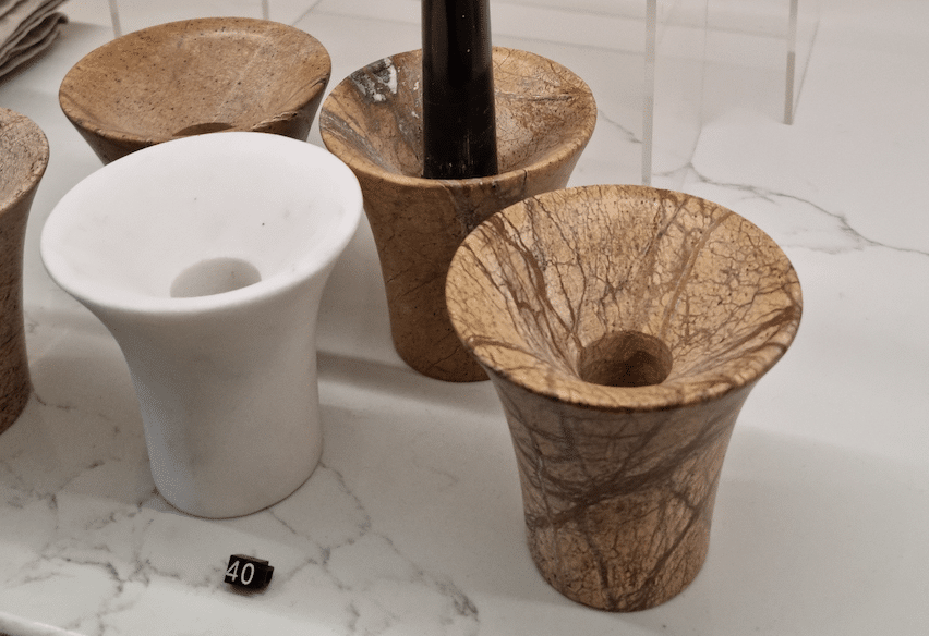 The Flare Candle Holder is a considered, sculptural piece that celebrates the unique tones of the marble in its constructed form. The reversible design creates flexibility, allowing the holder to be used either way up.
