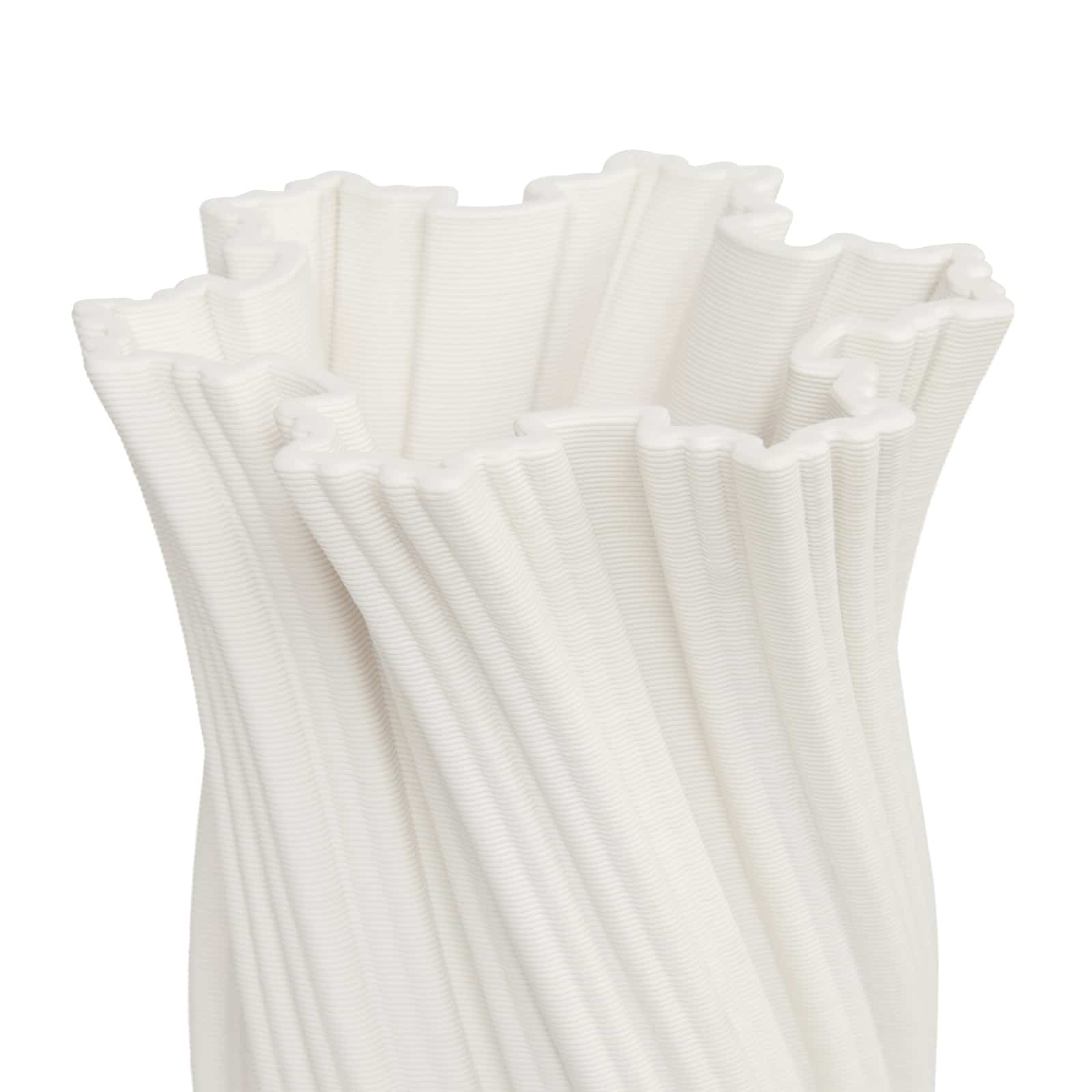 Crafted with exquisite artistry, the Ivy vase showcases a unique design that mimics the delicate folds and cascading nature of flowing fabric. Its sculptural form emulates the organic movement of cloth, creating a visually captivating and dynamic centrepiece. The textured surface of the vase further enhances its resemblance to soft, billowing fabric.
