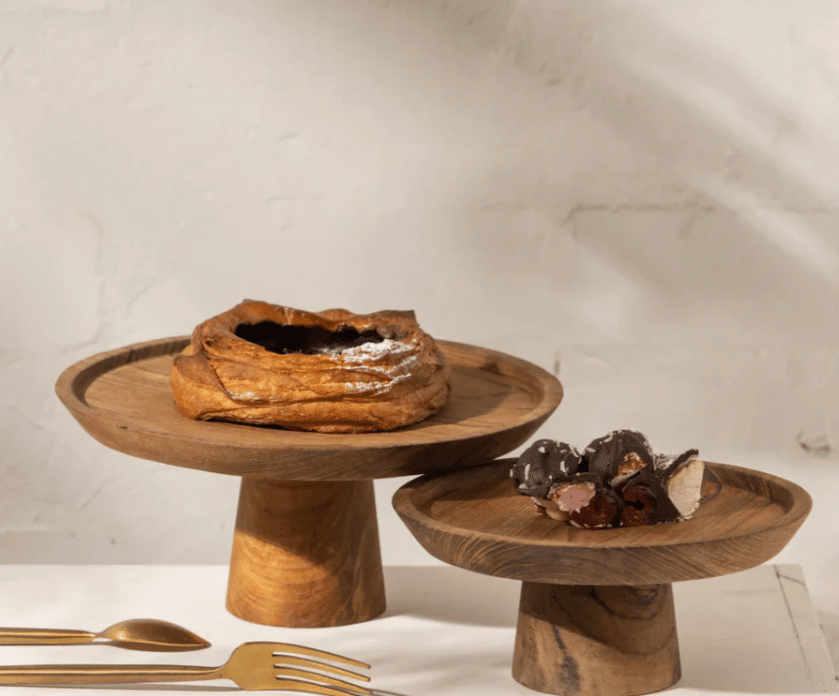 Our teak tabletop range is handmade using traditional techniques & recycled wood, making them not only a beautiful classic piece but also an eco-friendly option. Great for a cake or entertaining platter!