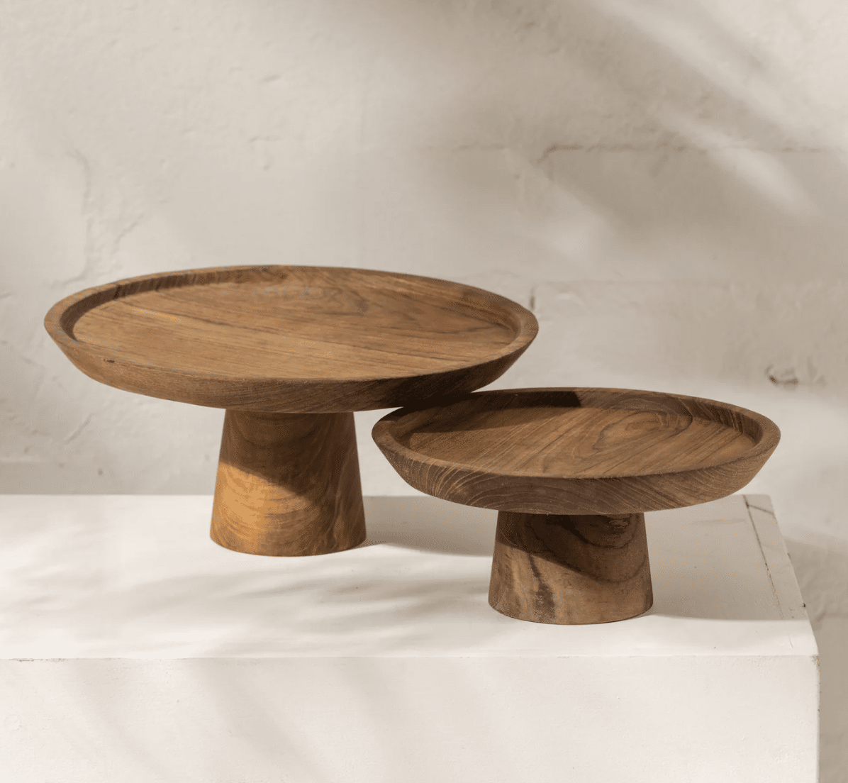 Our teak tabletop range is handmade using traditional techniques & recycled wood, making them not only a beautiful classic piece but also an eco-friendly option. Great for a cake or entertaining platter!