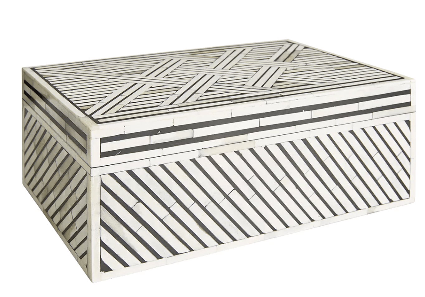 Natural bone and black resin box with diagonal design. Also available in large