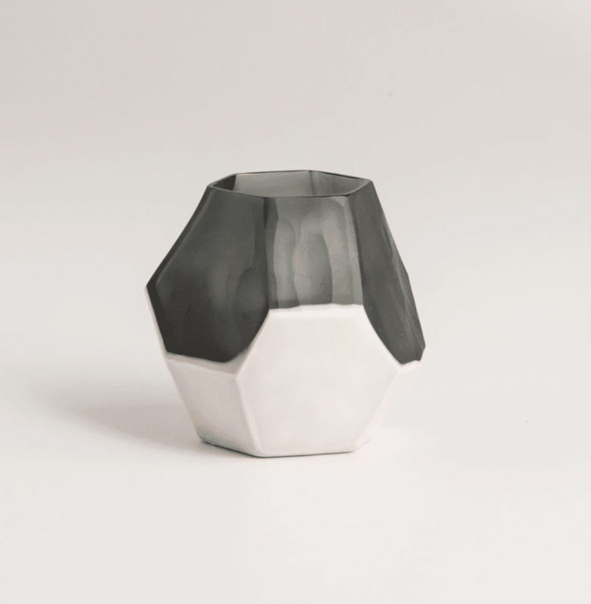 Crafted from black and white glass our Maxine votive holder will diffuse a warm, moody light throughout your space.