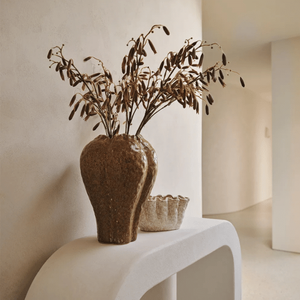 The Nagio Pot features a unique glaze finish that reveals a blend of rich colours and organic shapes. A timeless piece designed to bring character and lasting style to any space.