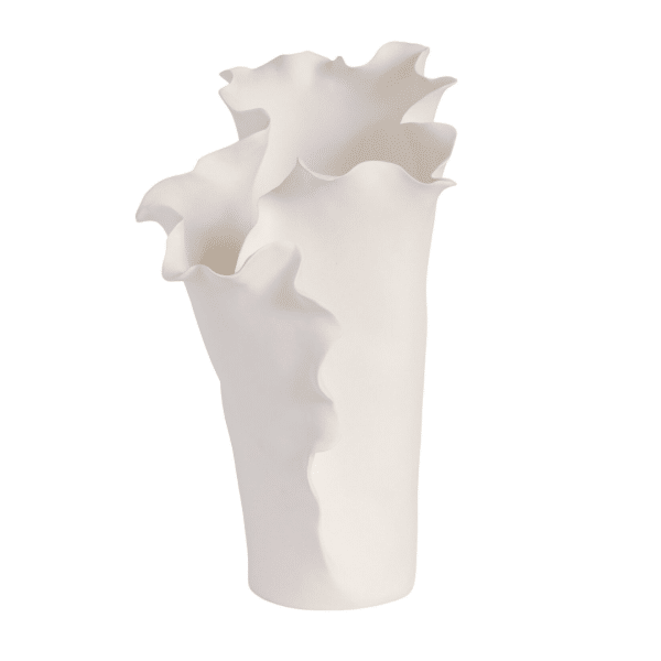 - Handcrafted ceramic vase with sculptural ruffled edges