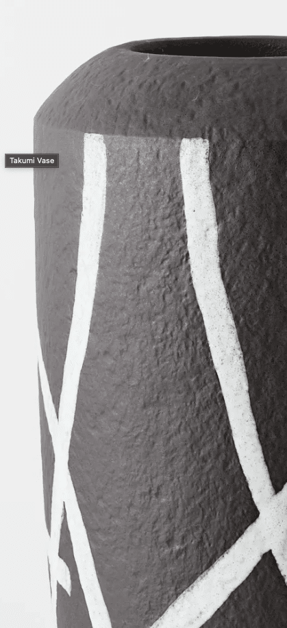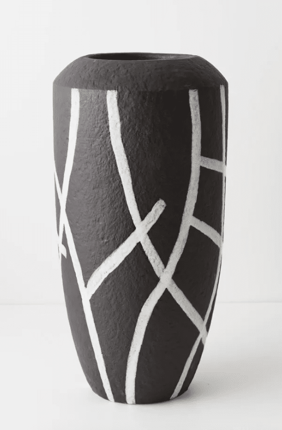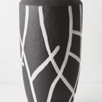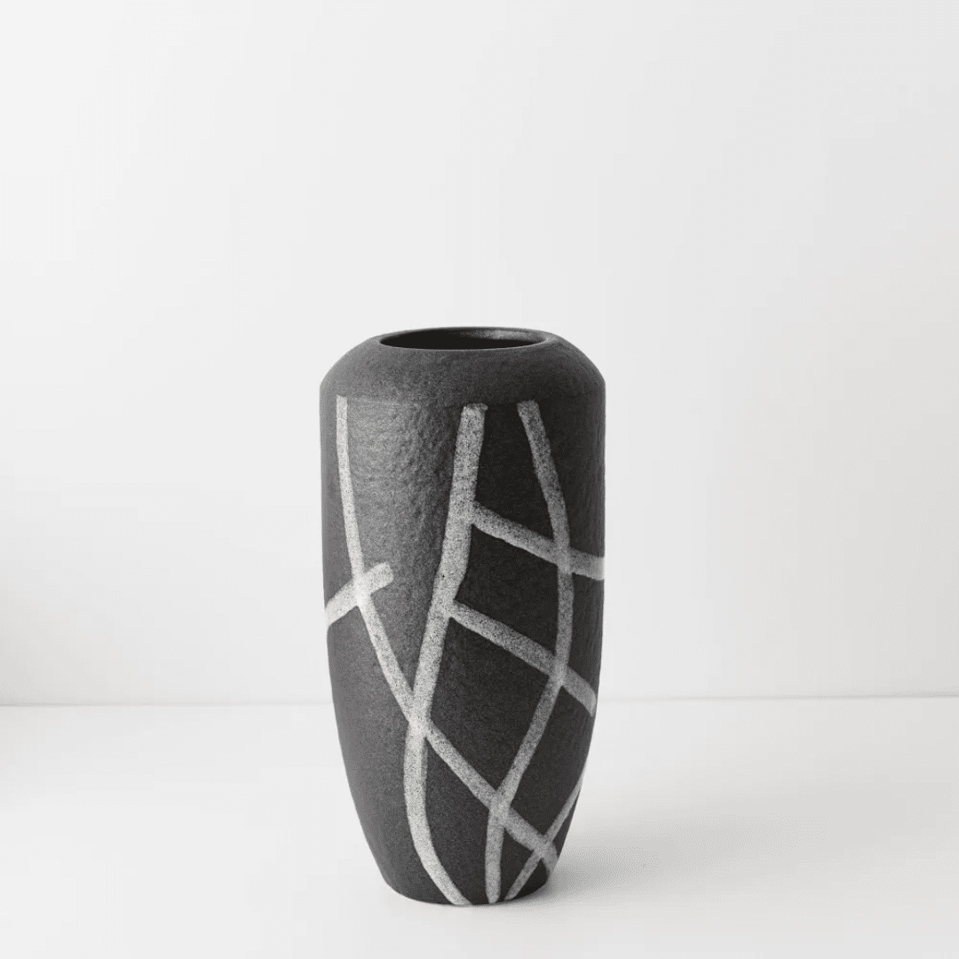 Finished in near black tone with white geometric details, this vase is designed to be both a decorative feature and a functional styling vessel. Its warm, neutral colour brings a gentle softness to interiors, while the generous scale creates a strong visual presence.