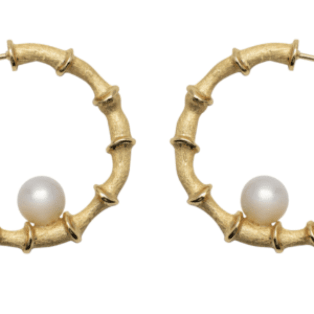 Introducing our Large Bamboo Hoop Earrings, featuring a freshwater pearl elegantly embraced by the hoop design. Crafted from gold-plated sterling silver, these earrings boast a luxurious sand finish that enhances their sophistication. The bamboo-inspired hoops add a unique, textured touch, perfectly complementing the natural luster of the freshwater pearl. Ideal for adding a statement piece to any outfit, these earrings blend contemporary style with classic elegance. Elevate your jewellery collection with these exquisite hoops, designed to bring a refined and distinctive charm to your look.