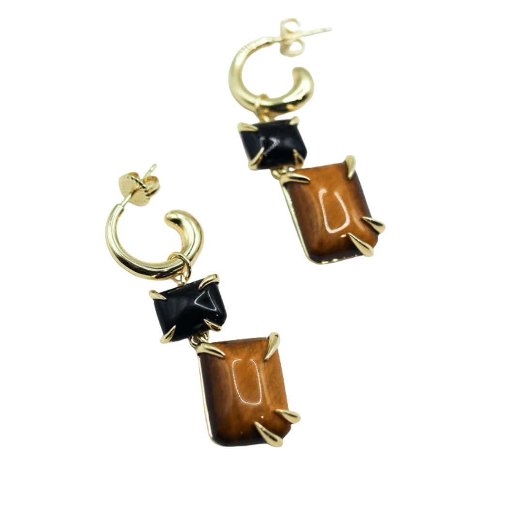 TheĀ Double Drop Claw EarringsĀ are an F+H essential. We have updated one of our favourite designs with cabochon cut natural onyx and tiger’s eye gemstones for classically-cool styling. The custom-cut gemstones are set in our signature over-sized claw settings and suspended from an easy-to-wear hoop, making these earrings perfect to wear from day to night.