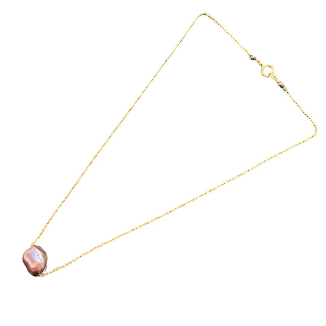 Freshwater Peacock Pearl on 9ct Gold Chain Necklace