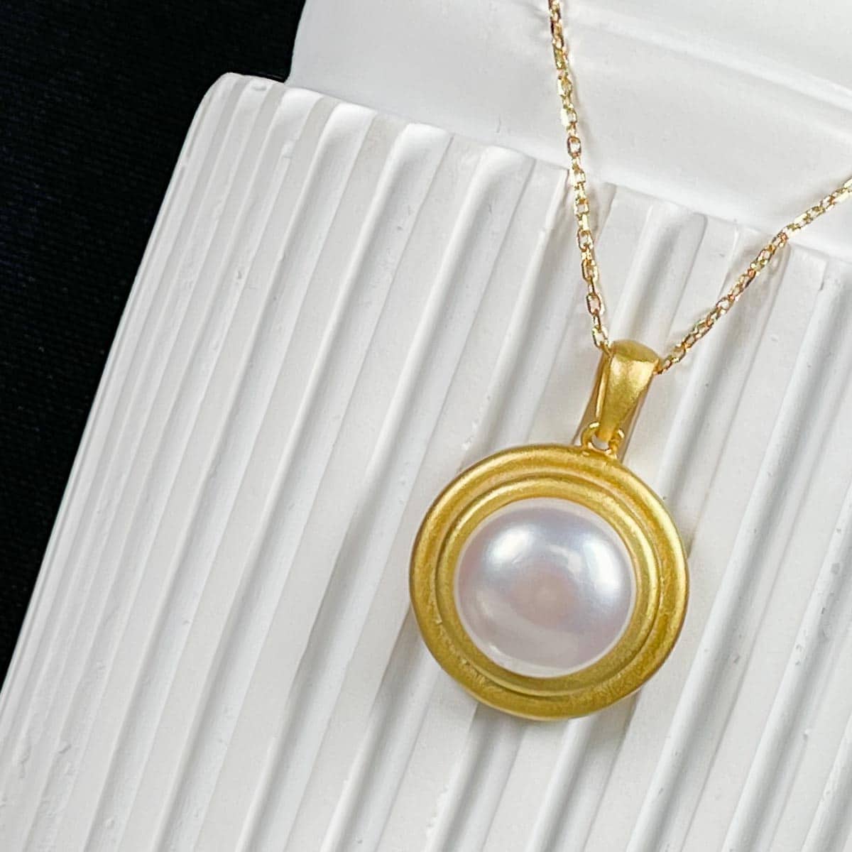 Introducing the Full Moon Necklace—a harmonious blend of minimalism and elegance. This refined piece is crafted from 18k gold-plated sterling silver, creating a lustrous and durable finish that radiates warmth. At its heart lies a luminous freshwater pearl, symbolizing purity and balance, and capturing the beauty of a full moon shining in the night sky. The simplicity of the pearl set against the golden circle makes this necklace effortlessly chic and timeless.