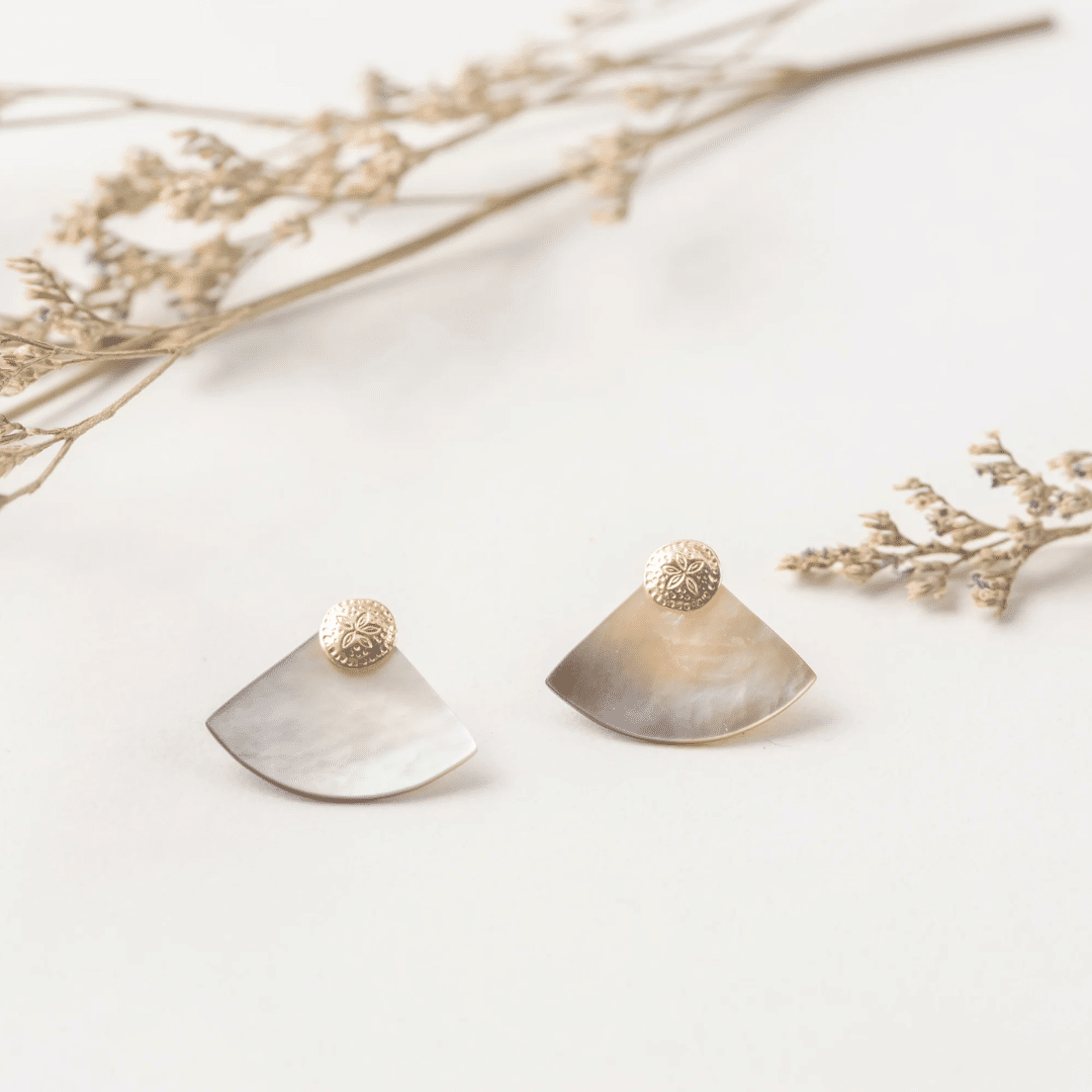 Have fun with the LAOS 3-in-1 front back earrings in gold filled and nacre.