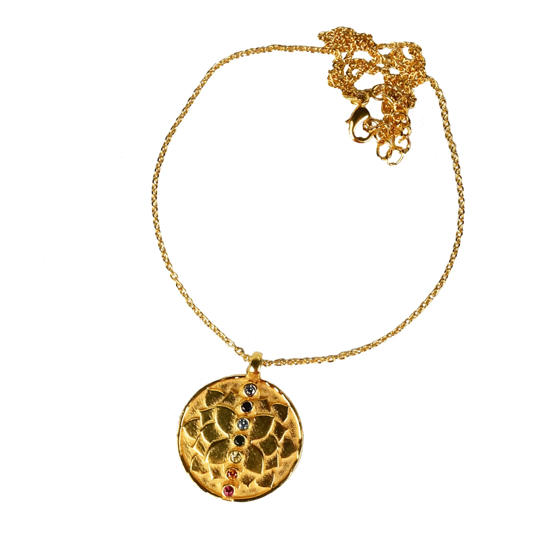 Enhance your elegance with the Lovely Lotus Necklace, a breathtaking piece that radiates sophistication and charm. This finely crafted necklace features a stunning lotus motif, symbolizing purity and grace, adorned with a vibrant rainbow of gemstones that catch the light beautifully from every angle.