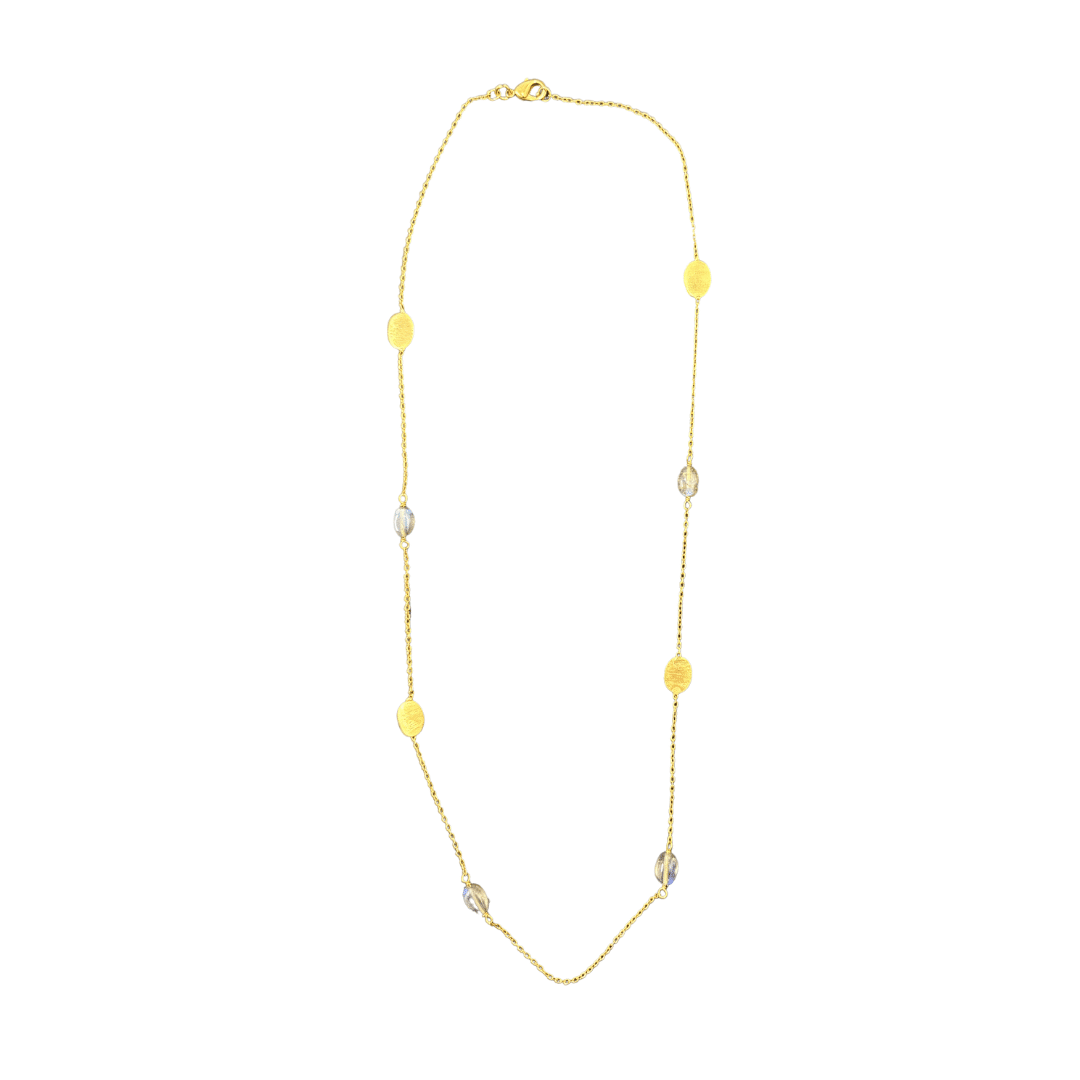 The labradorite gemstones, known for their mystical flashes of colour, and the deep sparkle of spinel, add a touch of understated luxury to this exquisite piece. Whether paired with casual attire or formal wear, theĀ Oliver Chain NecklaceĀ enhances any ensemble with its subtle elegance and timeless charm.