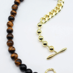 - Natural onyx and dalmatian jasper gemstones.