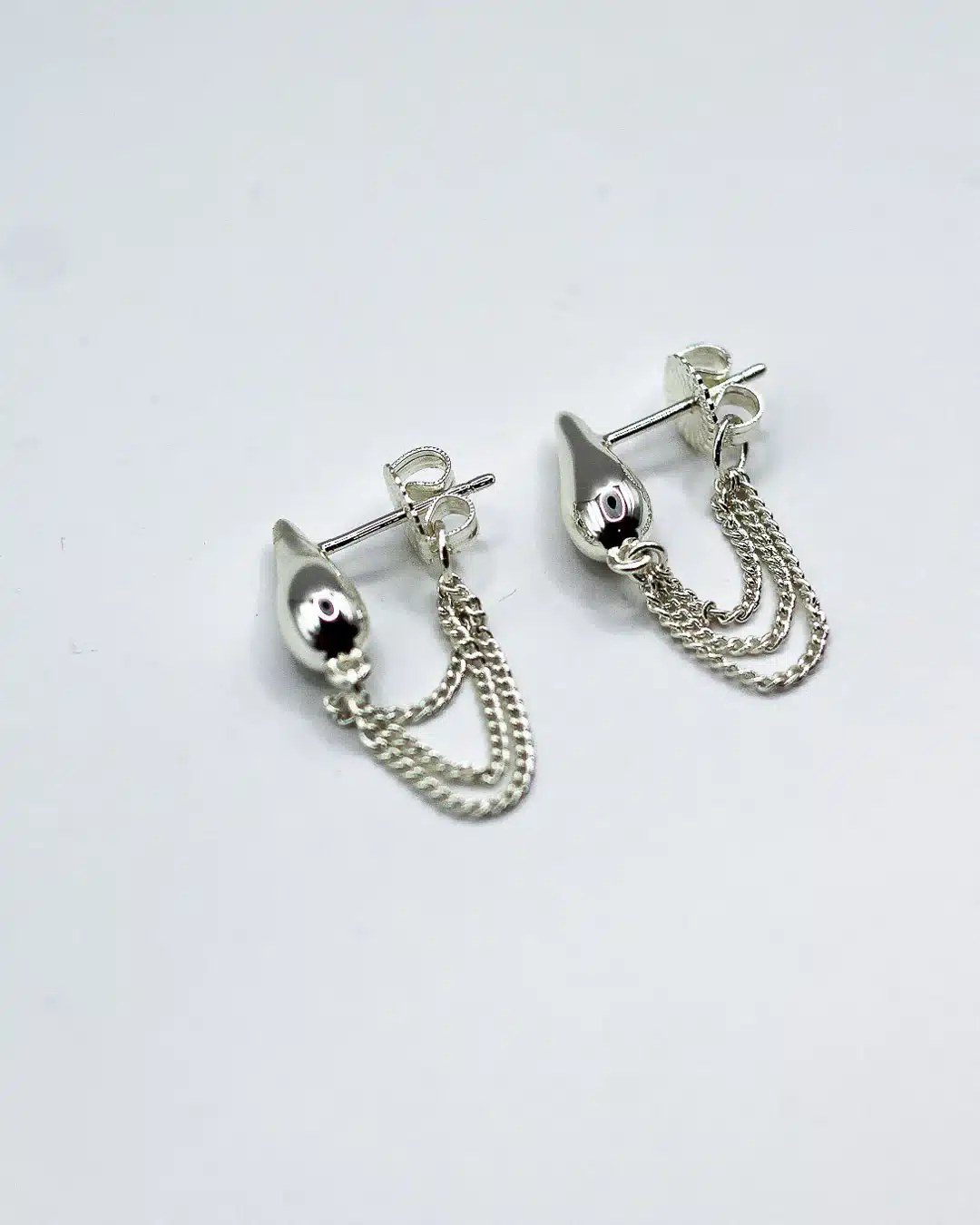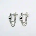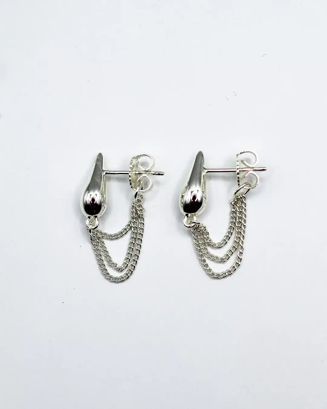 The droplet shape of this stud earrings has been handcrafted to create it's beautiful fluid shape, and the addition of curb chains takes this earring from a simple stud to an eye-catching styling piece. Try wearing this stud earring with other droplet shapes from our F+H Studios earring collection.