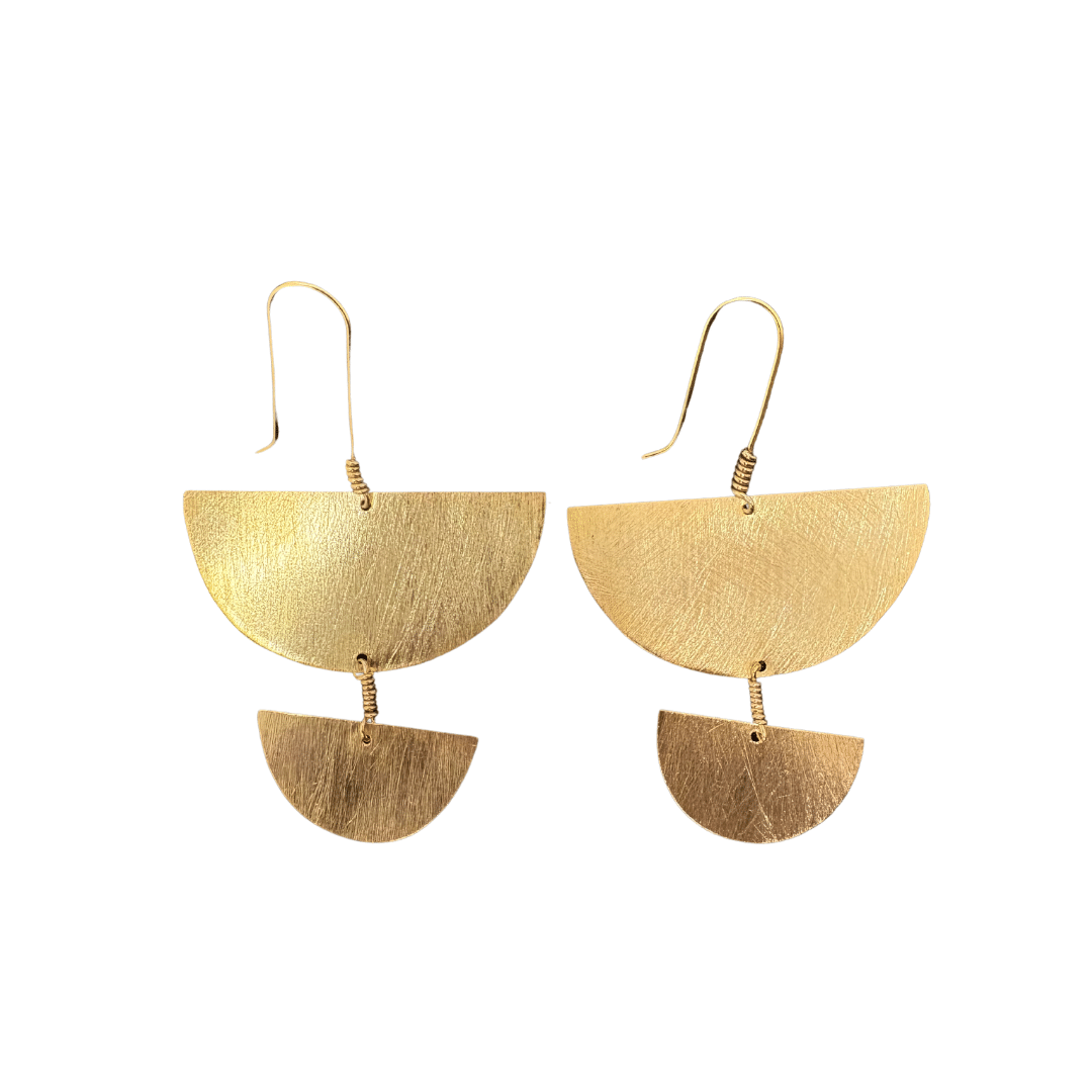 Each earring showcases a graceful half-circle silhouette, designed to create a harmonious balance between bold geometric shapes and delicate movement. Crafted from high-quality jewellers’ brass and finished with a luxurious 24-carat gold coating, the Shiloh Earrings exude a warm, radiant glow. Their smooth, matt finish adds a refined touch, making them suitable for both day and evening wear.