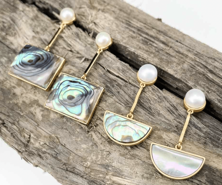 18K gold plated sterling silver with mother of pearl and freshwater pearls