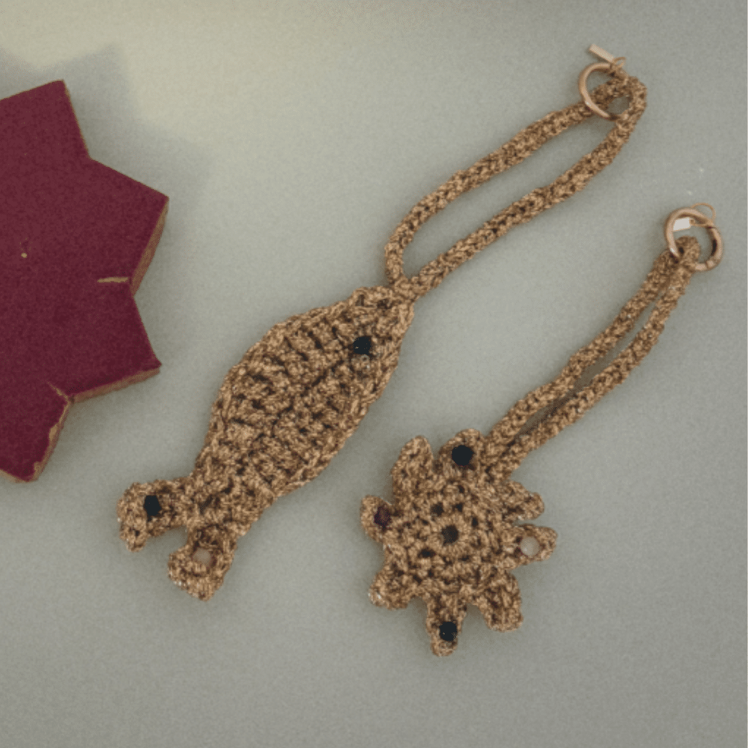 Each piece is individually hand crocheted in Mallorca with gold lurex yarn and beaded with