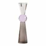Sleek, sculptural, and sophisticated, the Aubrey Grey Candle Holder is a striking addition to any modern interior. Standing 28cm tall, this piece is crafted from coloured cut glass and features a stunning trio of tones: a clear glass top, a faceted orb in soft lilac (Pantone 2635 C), and a smoky grey base (Pantone 4267 C).